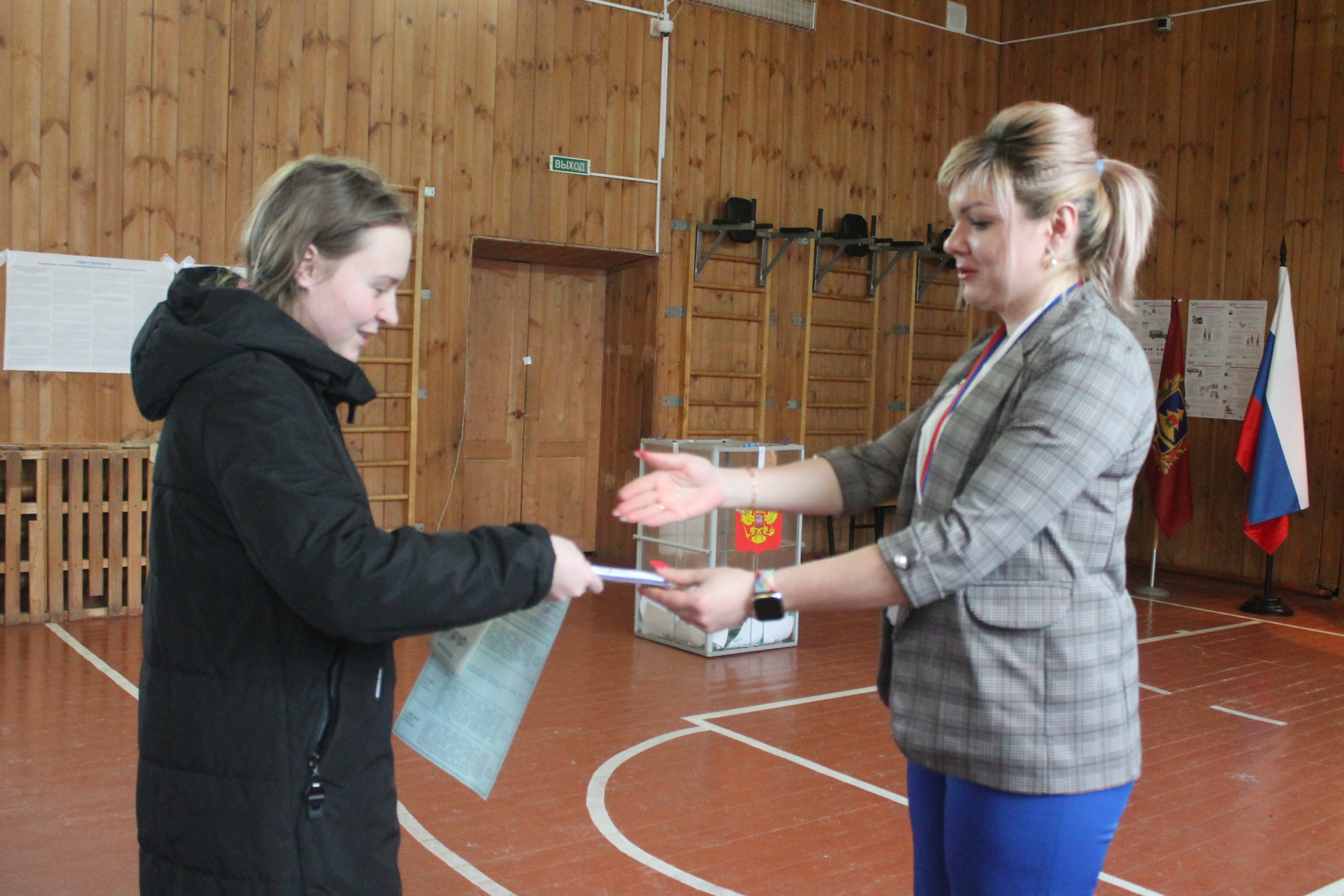 Выборы Президента РФ совпали с днем рождения Марины Никольской, ученицы школы им. А. М. Горького. Ей исполнилось 18 лет и она, как совершеннолетняя, пришла на избирательный участок. Ее поздравили члены избирательной комиссии, а председатель ...