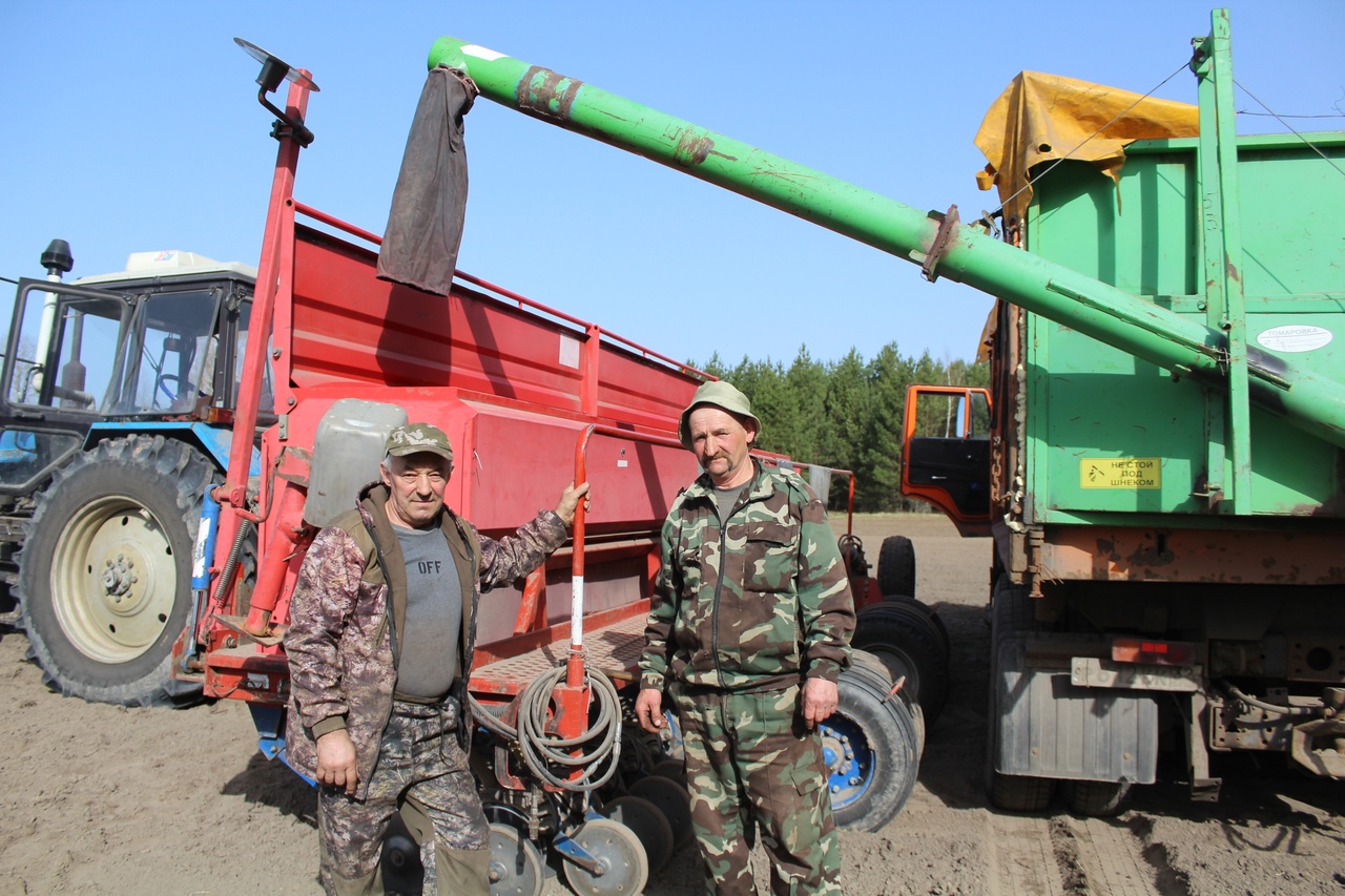 Трудятся здесь с самого раннего утра, потому что каждая погожая минутка на счету. Рядом с механизаторами обязательно дежурят машины-загрузчики. Комбайн-сеялка периодически подъезжает к машине и отгружает новую партию семян. С ними у предприятия проблем нет. Семена отечественного производства — яровая пшеница сорта «Одета», рекомендованная для посевов в нашей полосе. Одновременно за комбайном идет трактор с прикатывающим катком, для того, семена лучше легли в землю. Также ведётся регулярное грейдирование полевых дорог.