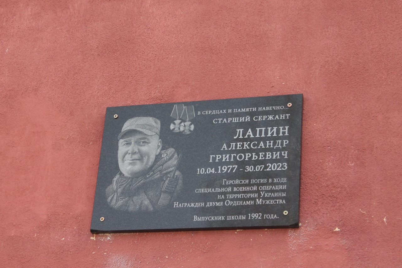 Сегодня, на фасаде школы №4 им. С.П. Лоскутова появились новая мемориальная доска. На ней — имя выпускника Александра Григорьевича ЛАПИНА, погибшего при выполнении воинского долга в ходе проведения специальной военной операции. Что символично, это памятное событие было организовано в день его рождения.