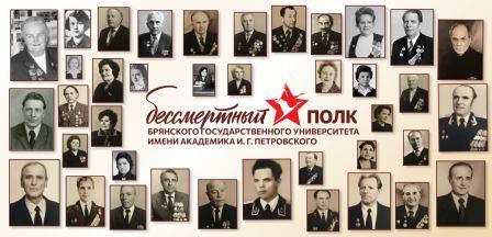 Особое место занимает участие преподавателей, сотрудников и студентов в движении «Бессмертный полк». На всех факультетах организованы стенды с фотографиями преподавателей и сотрудников – участников Великой Отечественной войны, размещены инсталляции, звучат песни военных лет. В рамках движения проводятся мероприятия и акции, направленные на сохранение у студенческой молодежи памяти о героях Великой Отечественной войны.