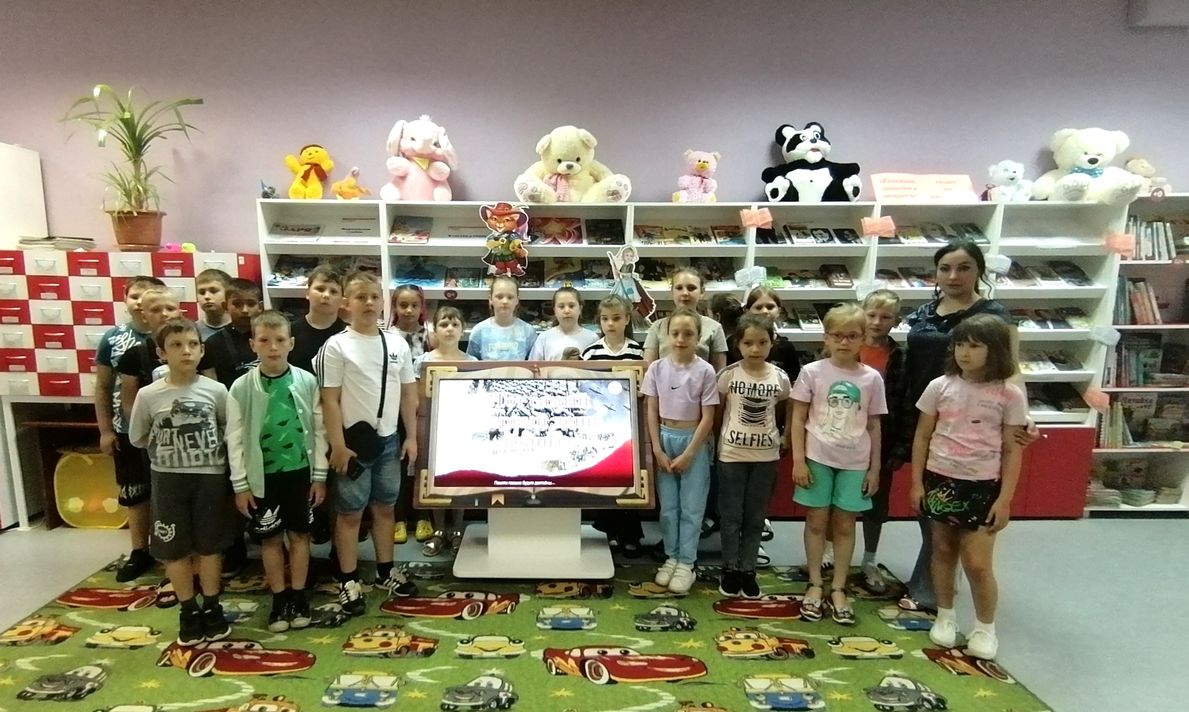 В детском читальном зале Карачевской муниципальной модельной библиотеки для школьников лагеря с дневным пребыванием средней школы им. А. М. Горького был проведен урок мужества «Памяти павших во имя живых» в преддверии 80-летия Великой Победы и в рамках проекта «Лица Победы».