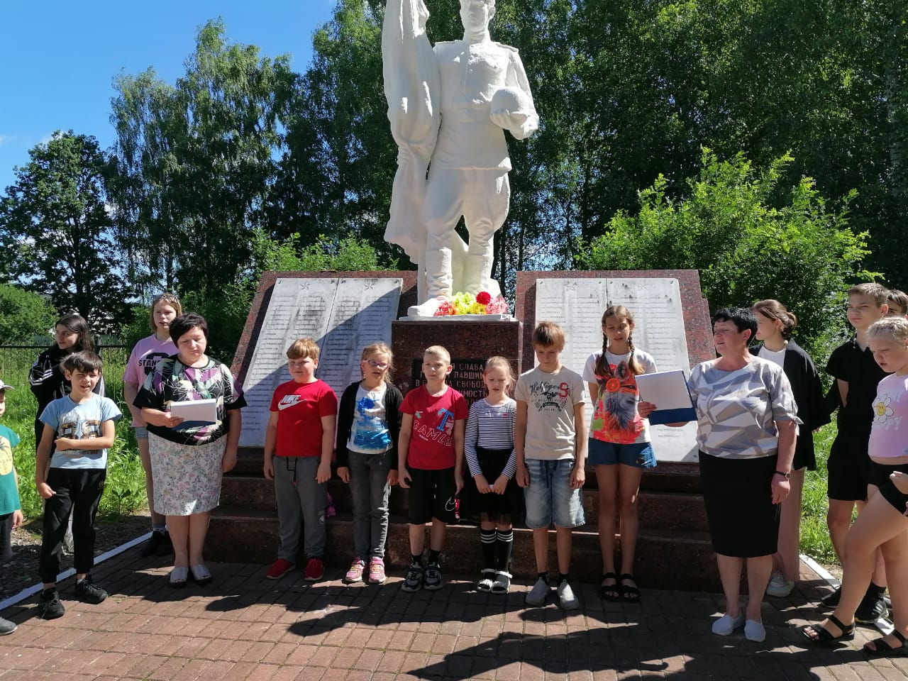 В преддверии Дня памяти и скорби, …» для детей летнего лагеря Трыковской школы у мемориала павшим воинам-односельчанам прошел митинг «Начало страшной той войны».
