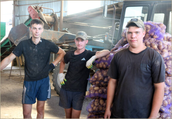В ООО «Жданковка» картофелем засажено в общей сложности 90 гектаров. В этом агропредприятии уже копают ранний сорт «Коломбо». Урожайность радует сельхозпроизводител, в первые уборочные дни собирают по 300 центнеров с гектара. В поле вместе со своими коллегами за штурвалом картофелеуборочной техники трудится и руководитель хозяйства Сергей Шакало. Наряду с опытными механизаторами здесь показывает хорошие результаты и молодежь. Они занимаются погрузкой упакованного в сетки картофеля на паллеты для дальнейшей их перевозки в ангар и реализации.
