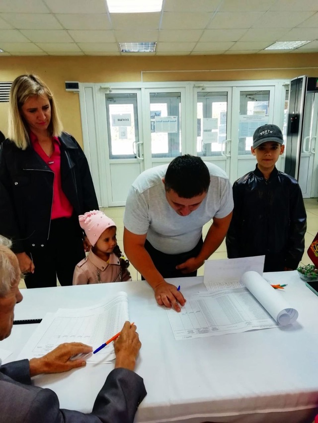 Молодая семья Чичиковых проголосовала на одном из избирательных участков города Карачева.