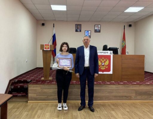 Обладательницей сертификата стала Анастасия Решетникова. Анастасия — сирота. Сертификат ей вручил глава администрации Стародубского района Александр Подольный.