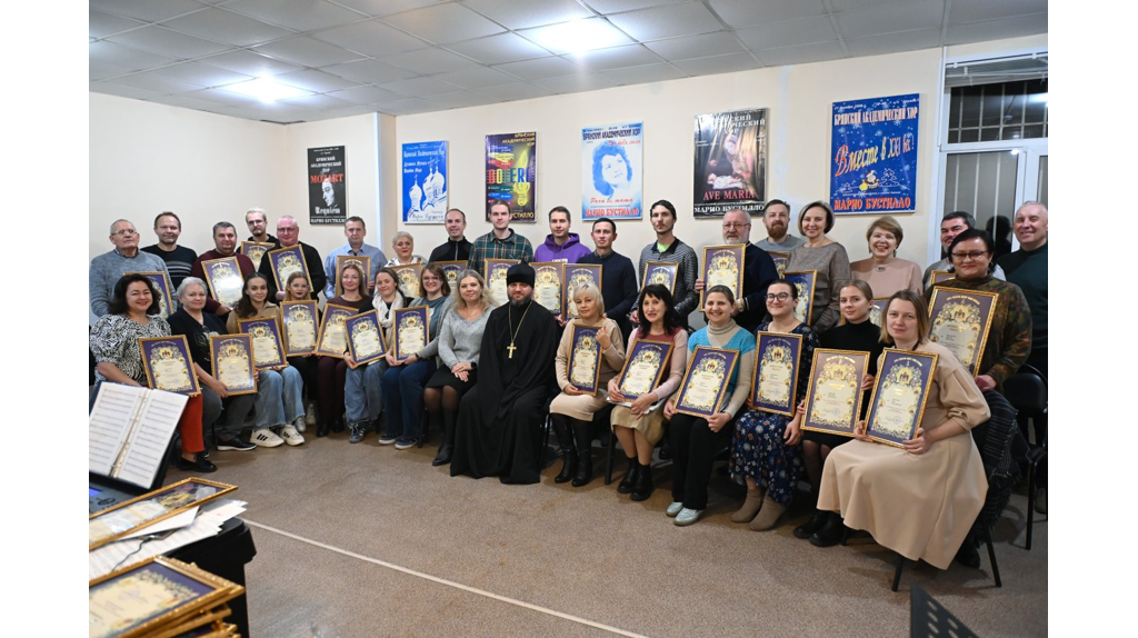 Игумен Тихон (Колесняк) 25 октября вручил архиерейские грамоты артистам Брянского городского академического хора. Об этом сообщает «Брянская губерния».