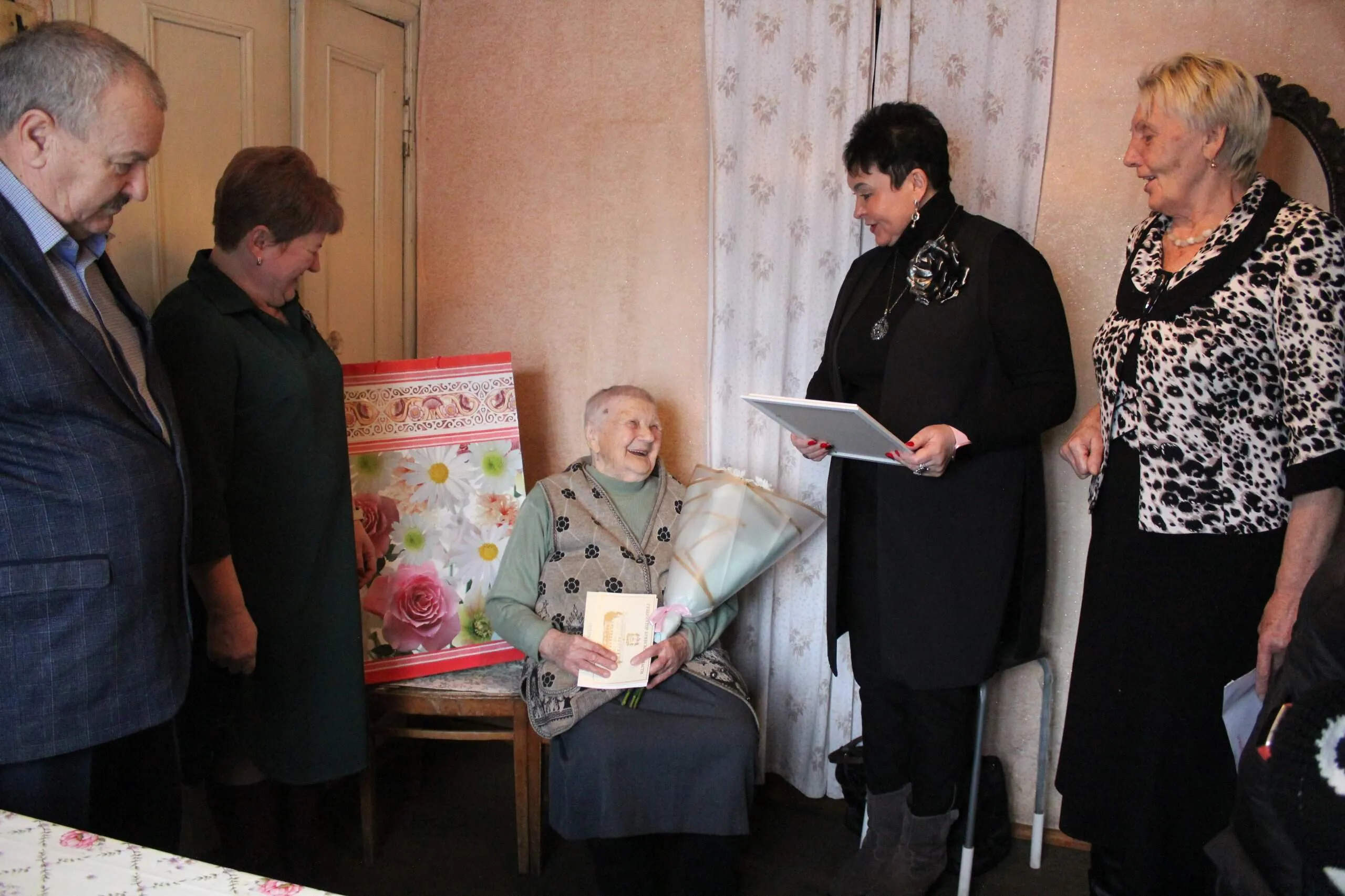 Чтобы поздравить с вековым юбилеем, отдать дань уважения и выразить слова благодарности именинницу навестили глава района А.В.Ходотов, глава города М.И.Иванова, начальник РУО С.Г.Егорова, председатель районного совета ветеранов Р.С.Гарбузова и представители социальной защиты населения. С пожеланиями здоровья, бодрости духа, внимания и заботы родных и близких почётные гости вручили юбилярше цветы, подарки и поздравительный адрес с наилучшими пожеланиями от Президента России В.В.Путина и Губернатора Брянской области А.В.Богомаза. Также Татьяне Григорьевне было вручено Благодарственное письмо от муниципальной власти Карачевского района