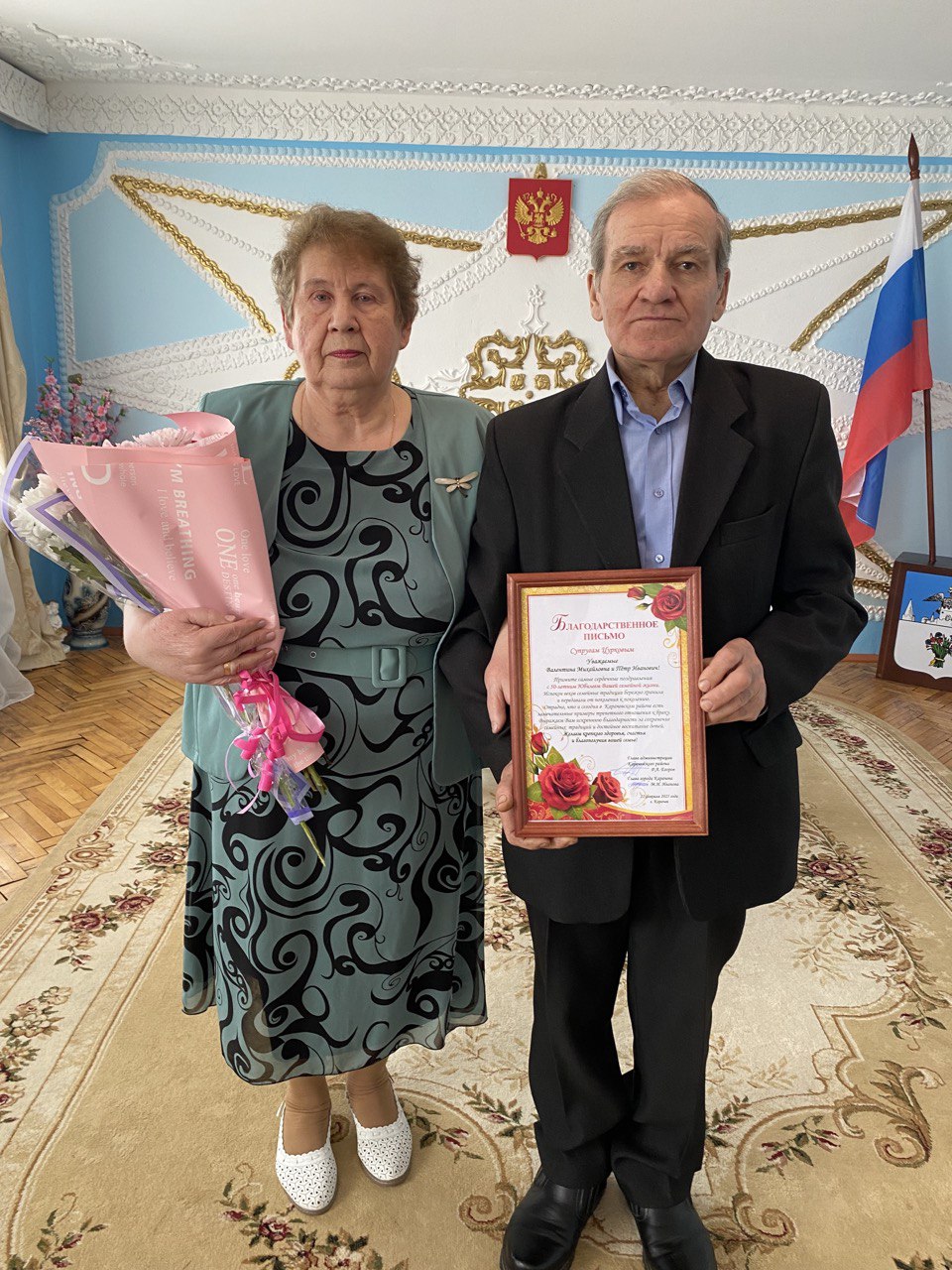 22 февраля в отделе ЗАГС Карачевского района чествовали юбиляров семейной жизни супругов Цурковых — Валентину Михайловну и Петра Ивановича. В этот день семейную пару с «золотым» юбилеем пришли поздравить, заместитель главы города Карачева Евгений Клюев и родственники супругов.