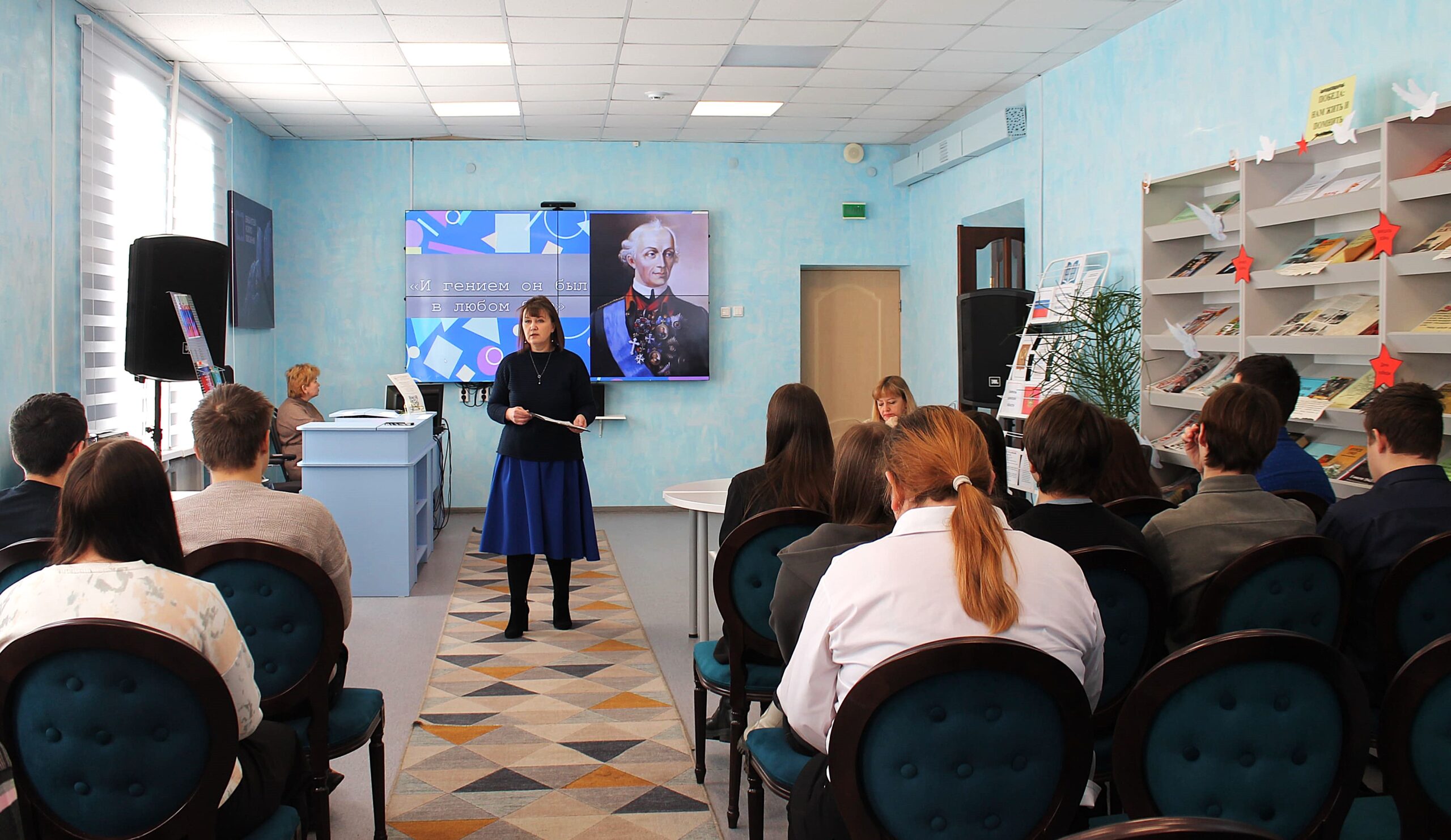 26 февраля в читальном зале Карачевской муниципальной модельной библиотеки в рамках программы «Пушкинская карта» для учащихся старших классов средней школы №4 имени С. П. Лоскутова прошла интеллектуальная игра «Вперёд, эрудиты!», посвященная жизни и военной деятельности А. В. Суворова.