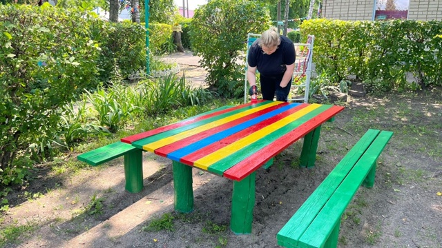 Так, в детском саду №1 «Аленький цветочек» воспользовались благоприятной погодой и провели покраску игрового оборудования на прогулочных площадках.