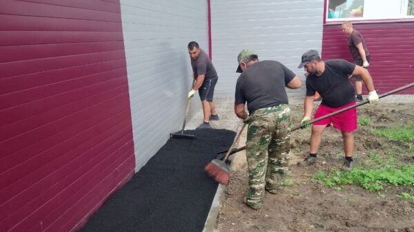 Динамично осуществляется отделка кабинетов на первом этаже. Эксперты подрядного предприятия выкладывают асфальт на отмостках по периметру здания. На входной группе установят новые двери в ближайшее время.