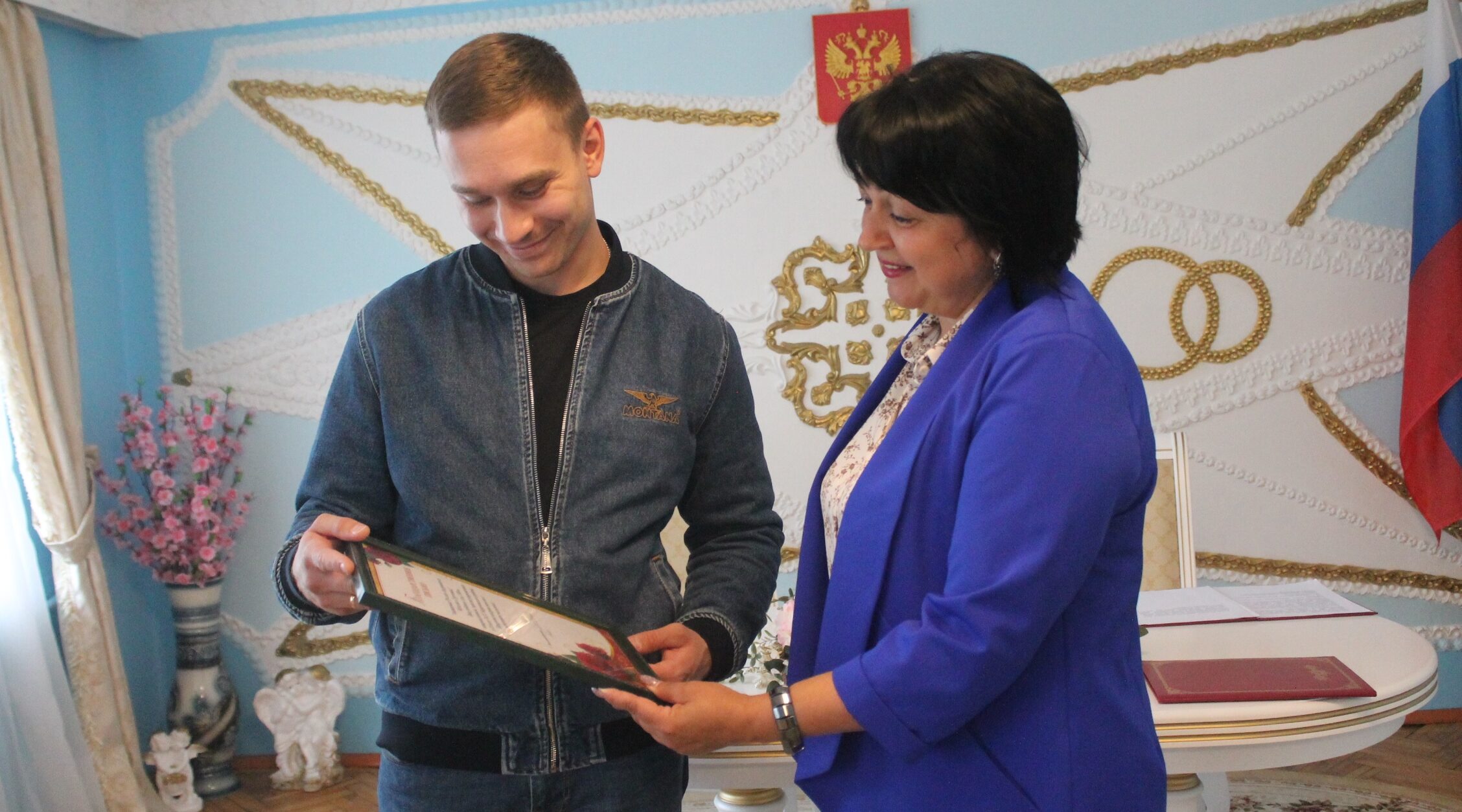 Сегодня, 3 сентября, в отделе ЗАГС Карачевского района принимали поздравление счастливые родители, у которых родился «юбилейный» ребенок. Документы вручила начальник Елена Николаевна Антощенко, а благодарственное письмо — глава города Карачева Евгений Александрович Клюев.