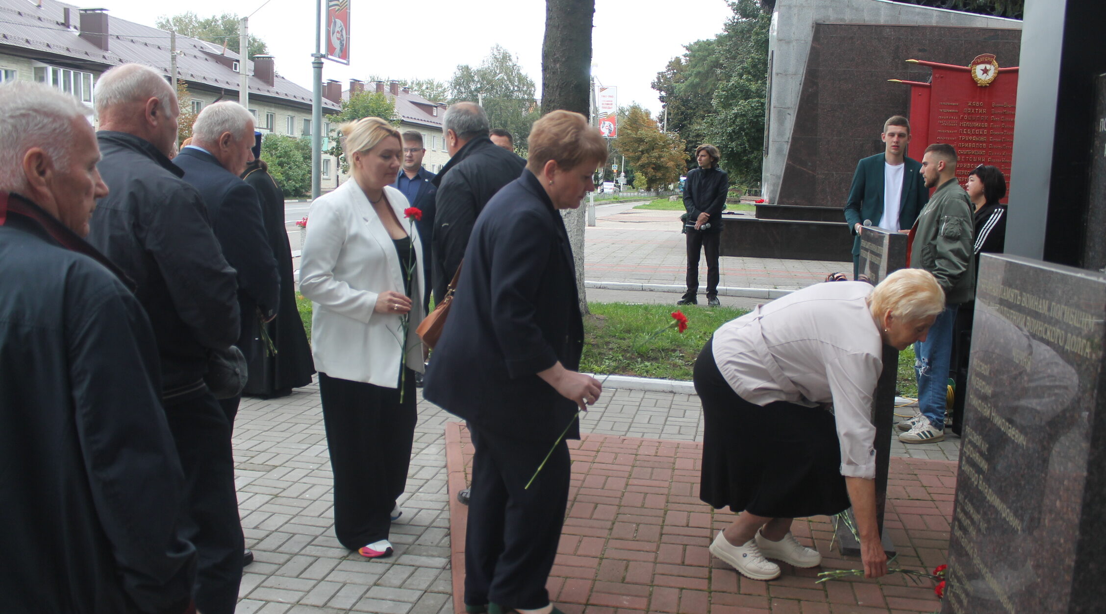 Память невинных жертв была почтена минутой молчания и возложением живых цветов, которые принесли к памятнику горожане всех поколений.