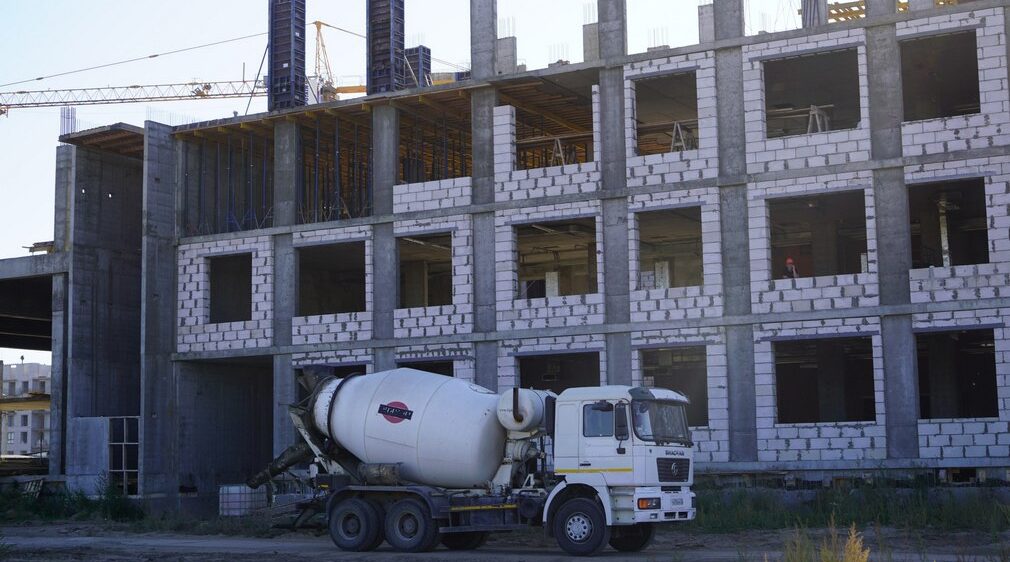 Возведение здания ведется по типовому проекту. В настоящее время ведутся работы по монтажу внутренних инженерных систем: электропроводки, вентиляции и индивидуального теплового пункта.