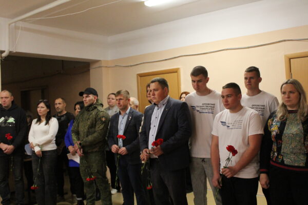 Сегодня, 22 октября, в Карачевском филиале ОГУ им. И.С. Тургенева в День праздника Белых журавлей состоялось торжественное и одновременно печальное событие — открытие двух памятных портретов на Стене Памяти. К семи уже известным именам героев прибавились ещё два — студенты Евгений Макаренков и Владимир Максаков, погибшие с разницей в один месяц в 2024 году, защищая Родину.