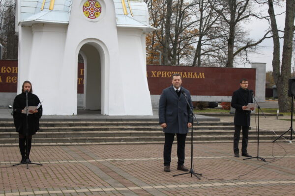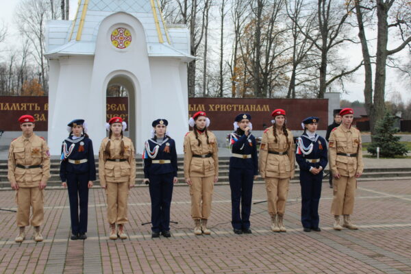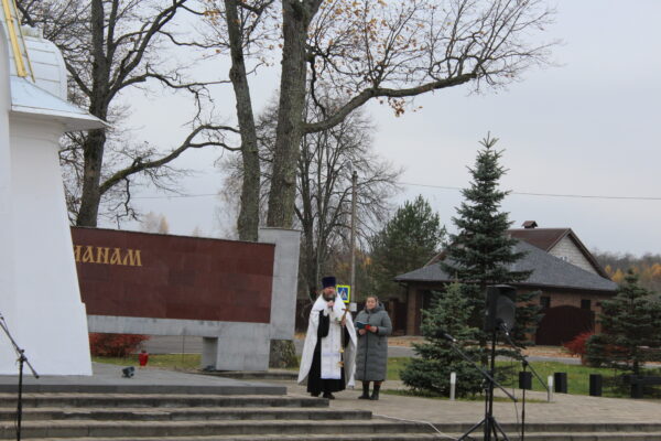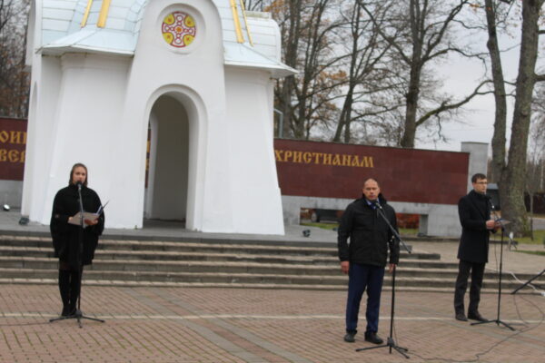 Торжественная церемония началась с заупокойной литии у часовни, которую отслужил настоятель храма в честь Новомучеников и Исповедников Российских отец Вячеслав Мухитов. Священник призвал собравшихся хранить память о невинно убиенных земляках и всех жертвах войны.