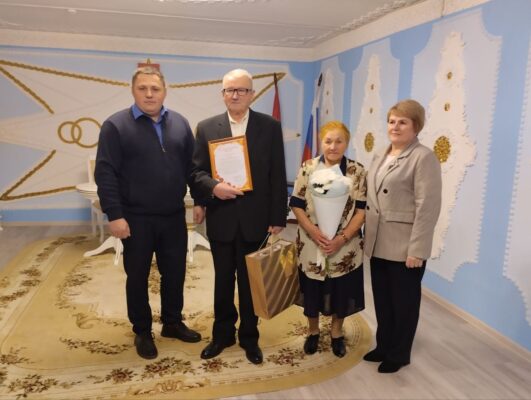 Поздравить виновников торжества с этой датой пришли почетные гости — глава города Евгений Клюев и начальник районного отдела образования Светлана Егорова. Они от всей души пожелали юбилярам крепкого здоровья, неиссякаемого тепла в доме и благополучия. Начальник Карачевского отдела ЗАГС Елена Антощенко сказала паре трогательные напутственные слова, а те, в свою очередь, оставили свой автограф в Почетной книге бракосочетаний юбиляров.