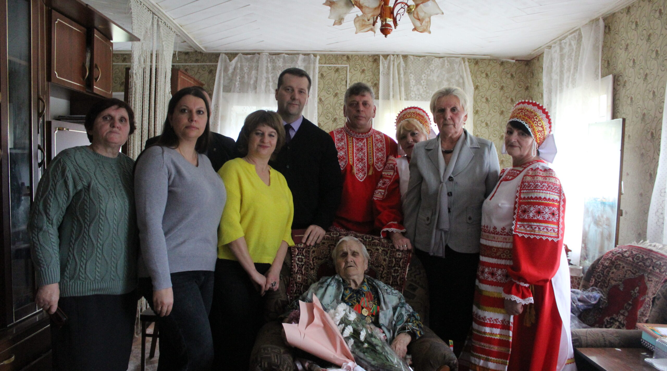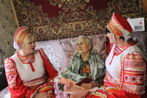 Феоктисте Прокопьевне вручили памятные письма от Президента России Владимира Путина и губернатора Брянской области Александра Богомаза. Гости преподнесли юбилярше именной торт с датой «100 лет», уютный плетеный плед и множество цветов. Особые эмоции вызвало исполнение ансамблем песни «Оренбургский платок» — в память о сибирских корнях именинницы.