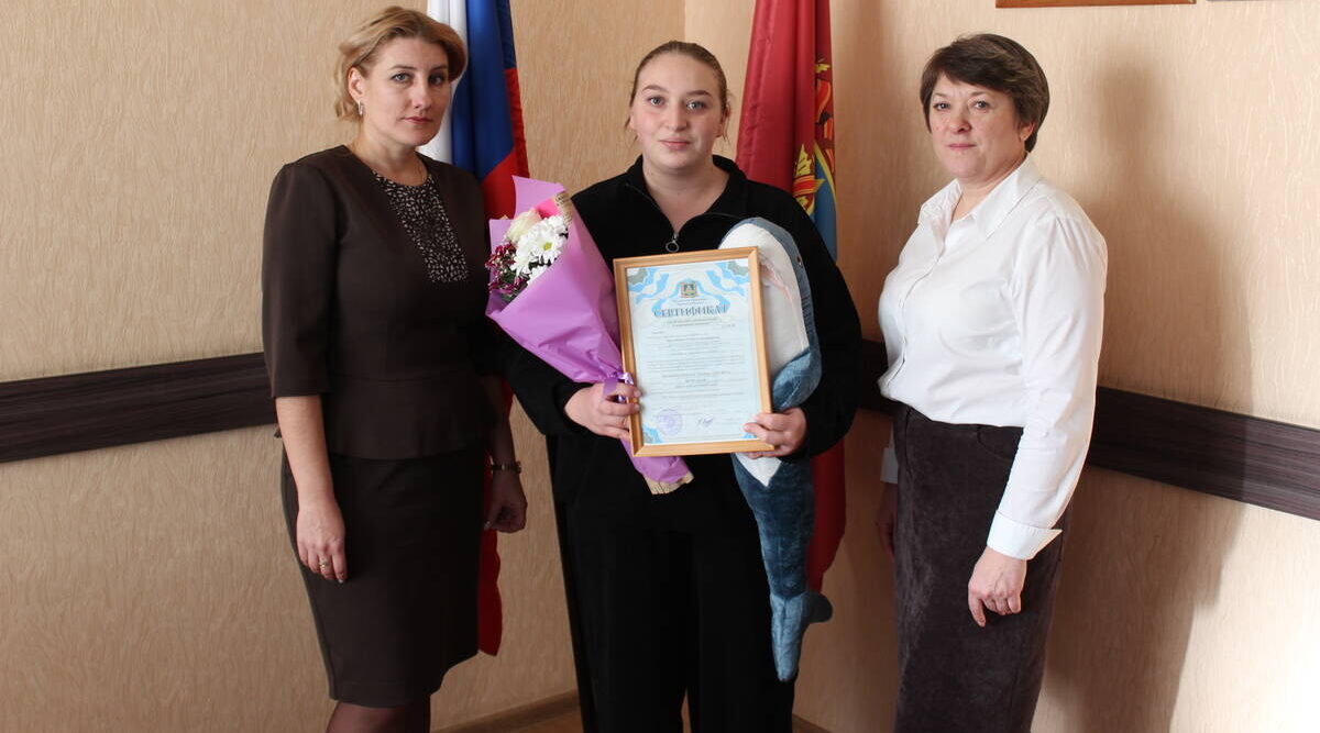 «Пусть этот сертификат станет символом государственной поддержки вашего благородного труда по воспитанию детей и укрепит семейное благополучие», — обратилась к Юлии Цыганковой Татьяна Балыкина.