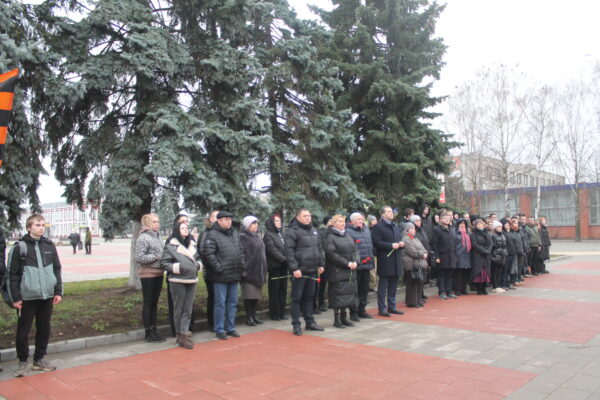 Завершилась акция минутой молчания и возложением цветов. Все участники почтили память павших, в том числе и у стены Памяти «Герои нашего времени», посвященной участникам специальной военной операции.