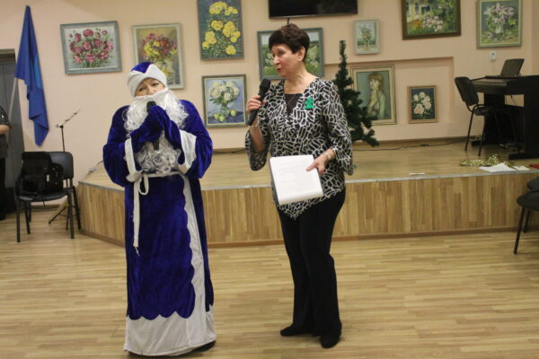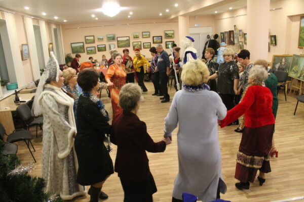 В гости пришли Дед Мороз, Снегурочка и добрая Фея в исполнении сотрудников РДК, вызвав добрые улыбки и желание порезвиться в хороводе. Музыкальную основу программы обеспечили Татьяна Андриясова и Александр Косарев, организовав номера, в которых участвовали все без исключения. Любимые мелодии уносили мысленно в юношеские годы.