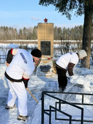 Они расчистили снег на обелиске, установленном на братской могиле 19-ти воинов Советской Армии, погибших в августе 1943 года при освобождении города Карачева. Соответствующая информация размещена на странице соцсетей в VK филиала