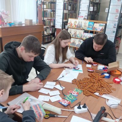 Завершилось мероприятие мастер-классом по изготовлению брошей из георгиевской ленты и атласных лент в цветах российского флага. Такие броши станут символом гордости и прекрасным подарком для защитников к наступающему празднику.