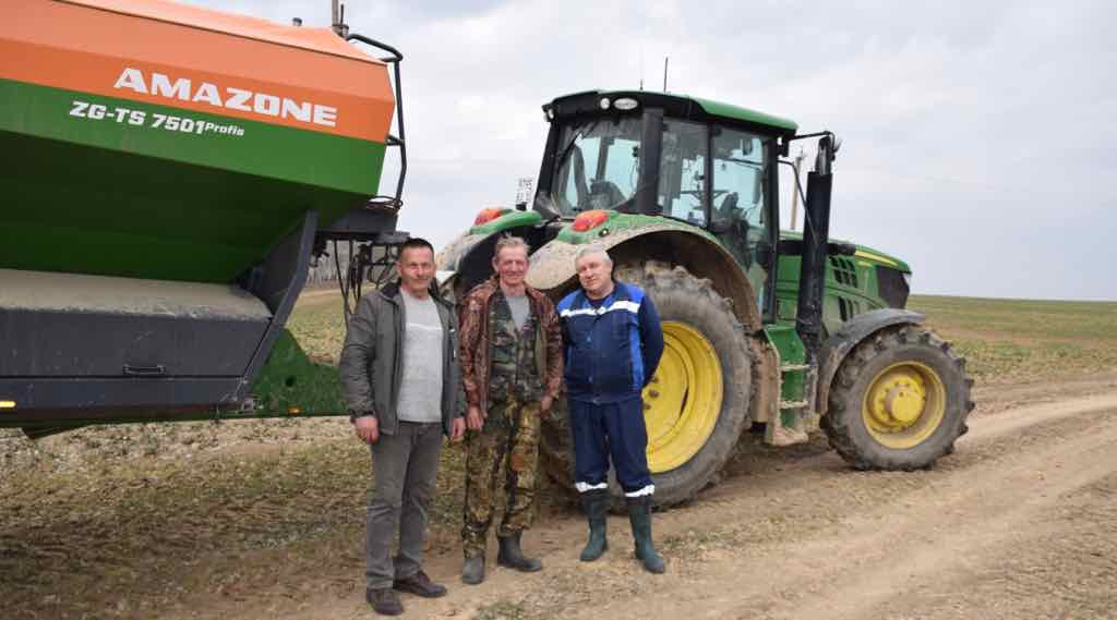 В ООО «Климовская Картофельная Компания» подкормка озимых выполнена на 74%: из 3012 гектаров обработано 2230. В полях трудятся трактористы Александр Дударев и Владимир Харитончик, процесс контролирует агроном Пётр Надточей.
