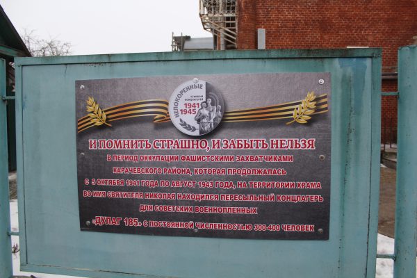 Тогда школьники начали искать сами: поднимали воспоминания, находили письма родственников погибших на тематических форумах, восстанавливали имена по тем крупицам. Так они выяснили, что в годы Великой Отечественной войны на территории Никольского храма в Карачеве находился пересыльный концлагерь для военнопленных «Дулаг 185». Об этом в нашем городе почти никто не знал. Мемориального знака на месте трагедии не было.