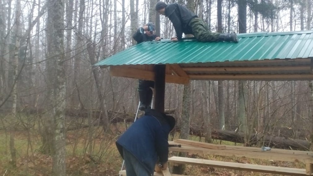 Лесники Фокинского участкового лесничества Брянской области построили беседку и партизанский костер на месте стоянки погибших в октябре 1941 года 13-ти солдат 2-й роты Бежицких партизан под командованием Георгия Климова.