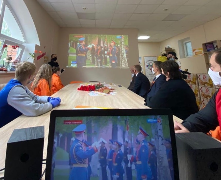Также они нашли время на то, чтобы посмотреть прямую трансляцию возложения цветов к Могиле неизвестного солдата, выступление президента и авиационный парад, которые прошли в столице. Вместе с ними в просмотре участвовали представители региональной и городской власти, которые сегодня поздравляют участников ВОв.
