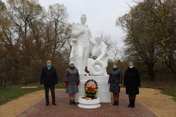 В октябре этого года здесь установили мраморные плиты, ограду, уложили брусчатку. Участники памятного мероприятия возложили к обелиску цветы и венки.