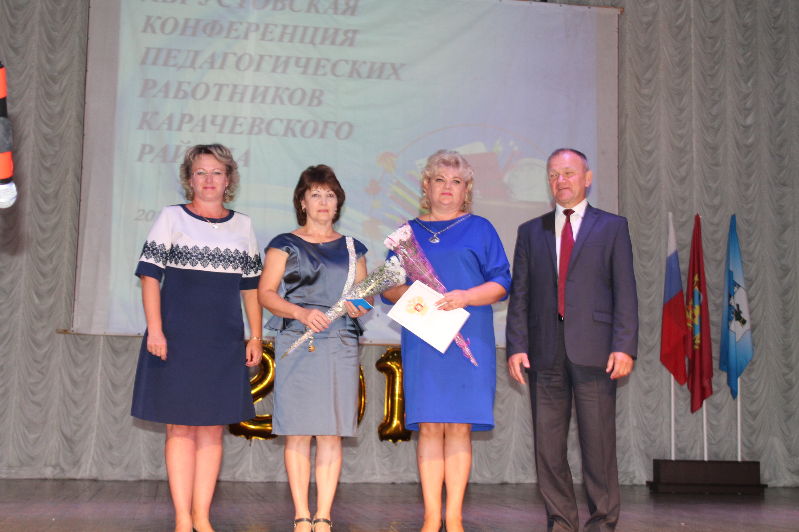 Большая группа педагогических работников была награждена различными наградами: Почетными грамотами Министерства образования и науки Российской Федерации, Благодарственными письмами Департамента образования и науки Брянской области, Почетными грамотами и Благодарственными письмами администрации Карачевского района , районного управления образования.