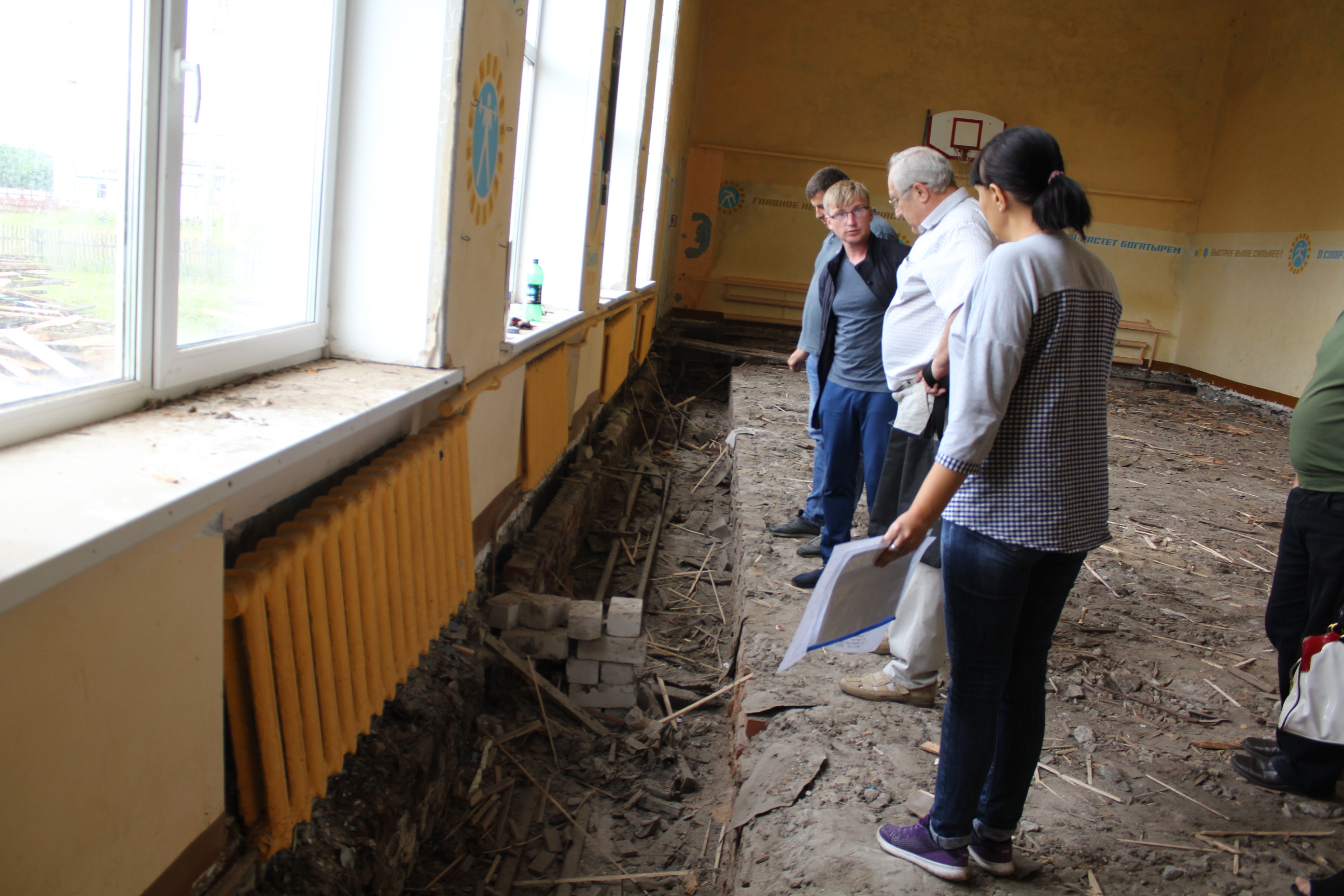 Что же планируется сделать? Как рассказал директор школы И.Ю. Шалов, в первую очередь, новые полы. Это будет наливной бетонный пол со спортивным покрытием TARAFLEX SPORT толщиной 6,3 мм. Также покрашены потолки, стены, которые частично покроют протектором, установлены современные светодиодные прожекторы и пожарная сигнализация. Такие же ремонтные работы будут выполнены и в кабинете тренера, инвентарной комнате и по переходу к спортивному залу, а это коридор длиною около 18 м. Кроме того, заменены системы отопления и водоснабжения. Но самое главное, из-за чего делается капремонт, отметил Иван Юрьевич, это установка радиального вентилятора, который будет производить принудительный воздухообмен помещения спортивного зала.
