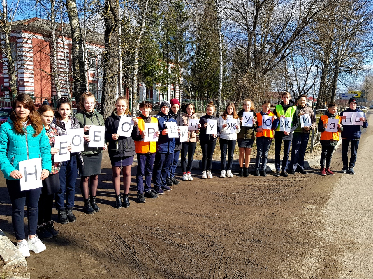 Ребята выстроили вдоль дороги живую инсталляцию «Не оборви чужую жизнь», призывая тем самым водителей быть особенно внимательными подъезжая к пешеходному переходу.