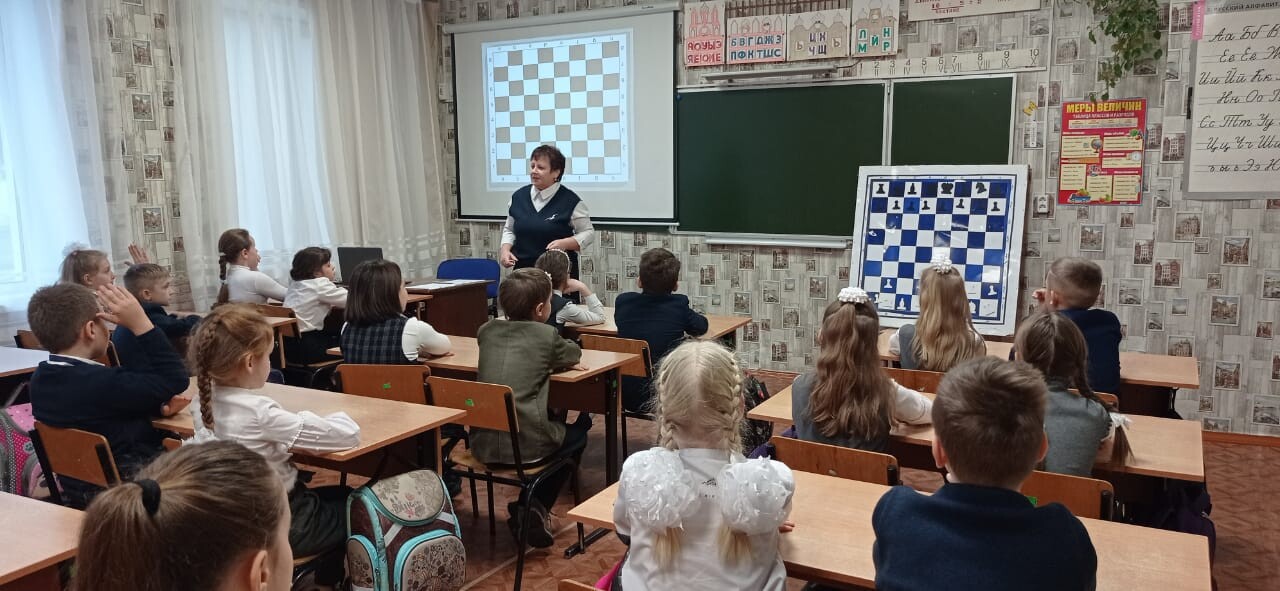 Классный час подготовили ученики 3 «Б» класса под руководством В.А. Нехаевой. Ребята познакомились с историей возникновения шахмат и их развитием в настоящее время. На мероприятии школьники рассказывали легенды о шахматах, исторические факты, разгадывали загадки, смотрели видеопрезентацию. В качестве гостей на встречу были приглашены руководители школьного шахматного клуба Н.А. Пискурева и М.В.Корхова. Нина Алексеевна рассказала о достижениях юных шахматистов школы имени А.М. Горького за последние годы. Например, 11 учащихся имеют разряды по шахматам, а автор статьи в игровой форме показала ребятам, как похожи шахматы с любимой игрой мальчишек «Война».