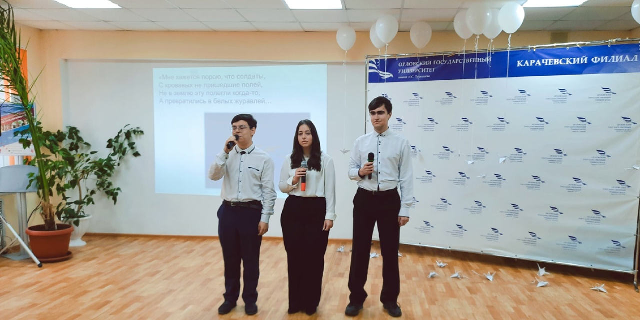 Сегодня, 24 октября, в читальном зале библиотеки Карачевского филиала ОГУ им. И.С. Тургенева состоялся литературный праздник «Белые журавли» . Он учрежден народным поэтом Дагестана Расулом Гамзатовичем Гамзатовым как праздник духовности, поэзии и и светлой памяти павших на полях сражений во всех войнах.