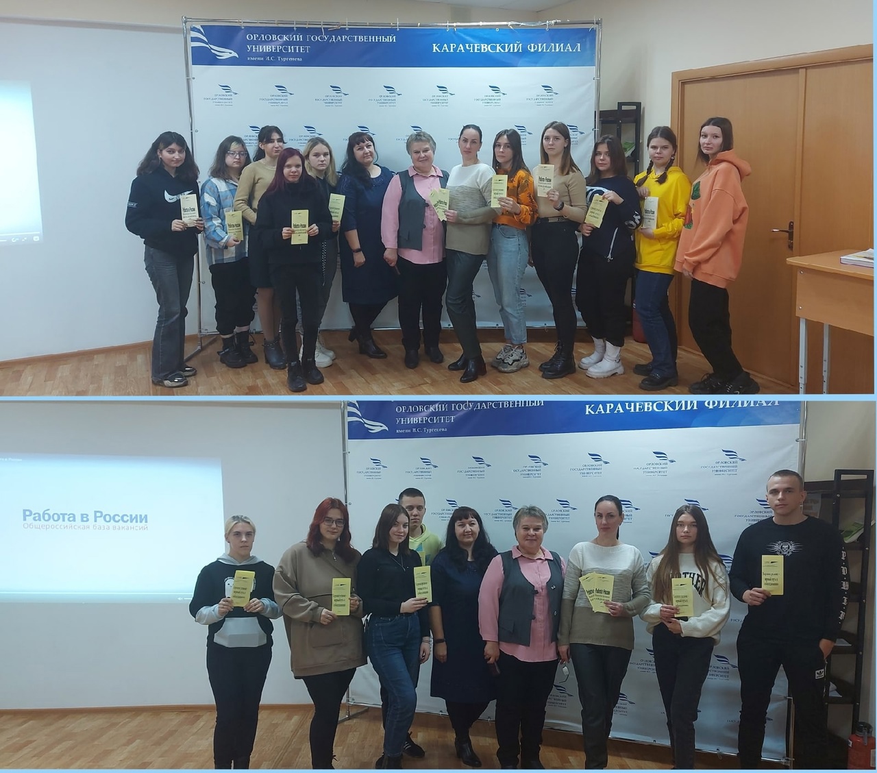 В рамках проведения областной профориентационной акции #ПРОкарьеру, специалисты районного центра занятости населения провели для студентов старших курсов Карачевского филиала ОГУ им И.С Тургенева карьерное мероприятие «Пора искать работу!» .