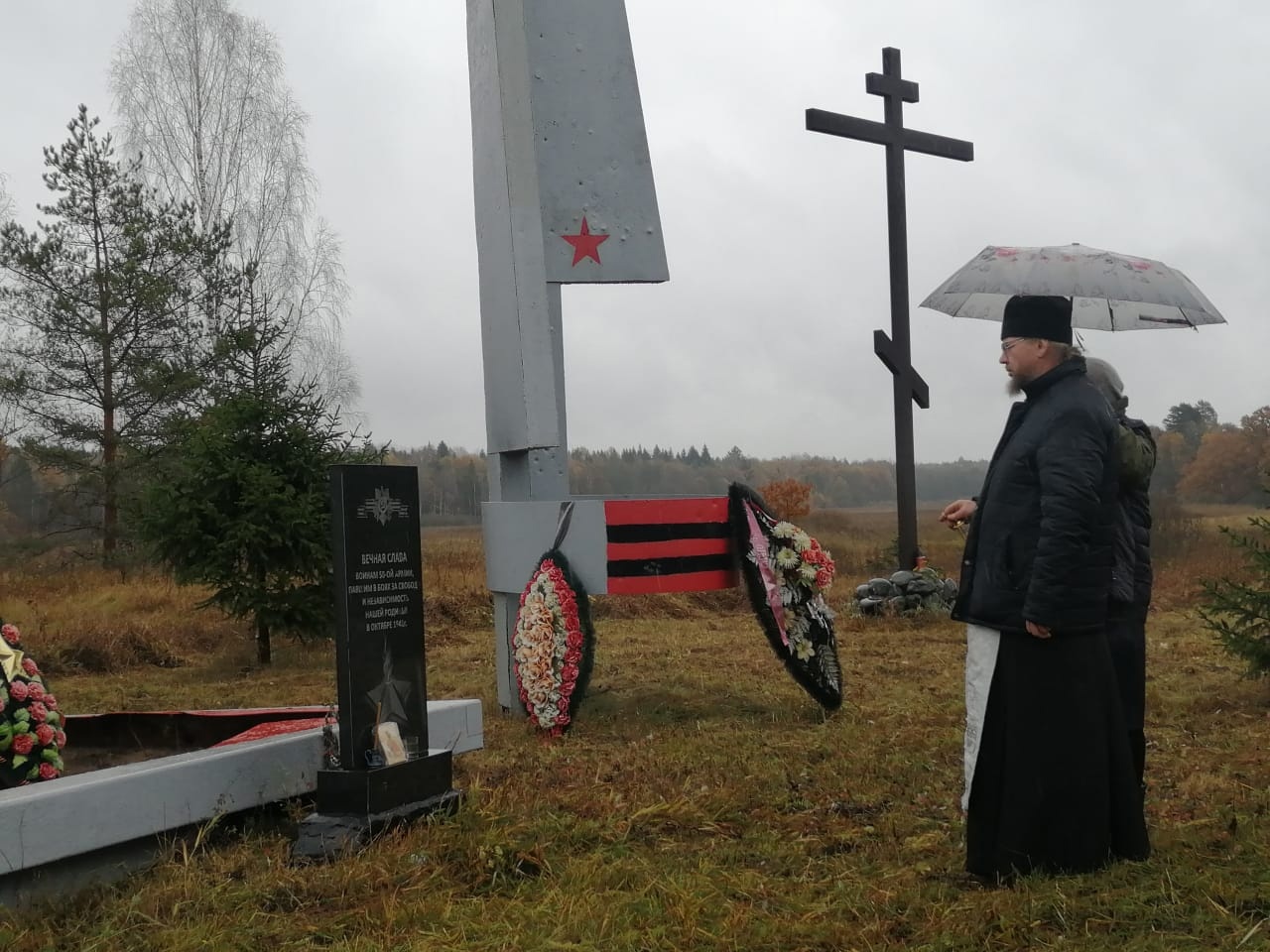 Для того, чтобы поклониться священному месту, почтить память солдат, сюда ежегодно приезжают люди. И в этом октябре традиция не была нарушена. Для того чтобы возложить венки и цветы к монументу, участникам патриотической акции пришлось преодолеть размытые километры ухабистой лесной дороги.