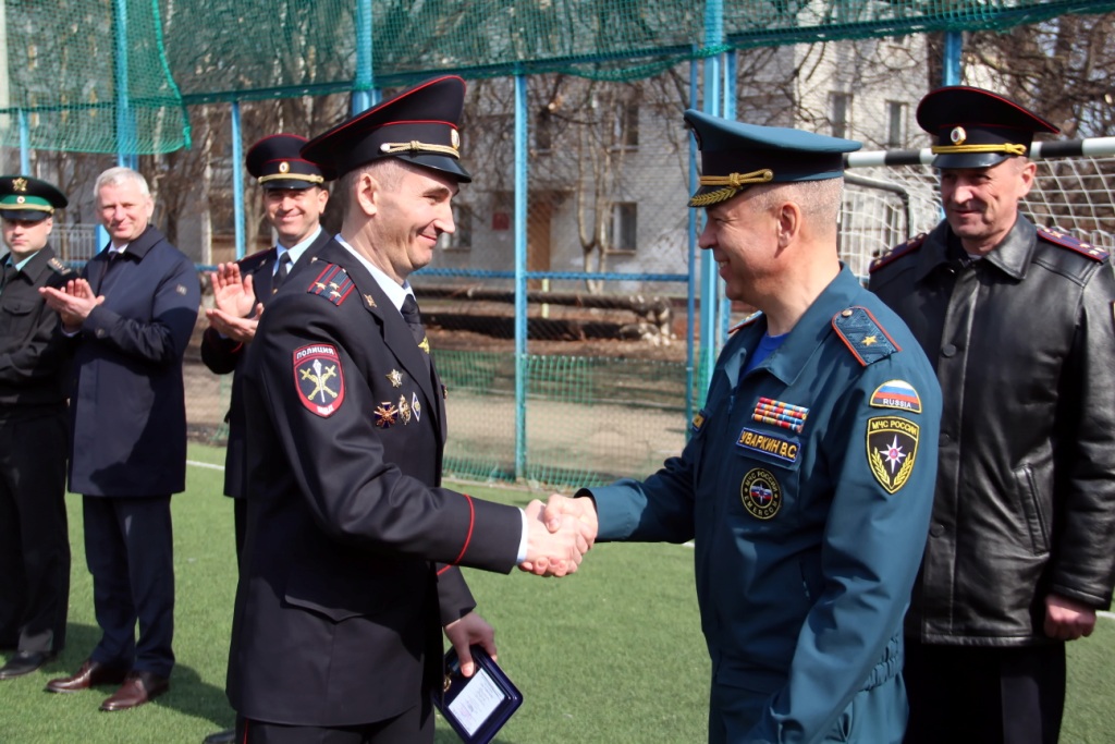 5 апреля состоялись финальные игры и награждение призеров чемпионата физкультурно-спортивного общества «Динамо» по мини-футболу среди сотрудников силовых структур Брянской области. Напомним, турнир длился 4 дня, в состязаниях участвовали 15 команд, представляющих различные правоохранительные ведомства. Во время церемонии закрытия турнира почетной золотой медалью «За особый вклад в развитие спорта и динамовского движения» был награжден начальник ГУ МЧС России по Брянской области генерал-майор внутренней службы Вадим Уваркин. Ценные призы, кубки и медали победители и призеры чемпионата получили из рук начальника УМВД области, председателя БРО ОГО ВФСО «Динамо» Владислава Толкунова, начальника Главного управления МЧС России по Брянкой области Вадима Уваркина и председателя клуба ветеранов УМВД России по Брянской области полковника внутренней службы в отставке Александра Сальникова.