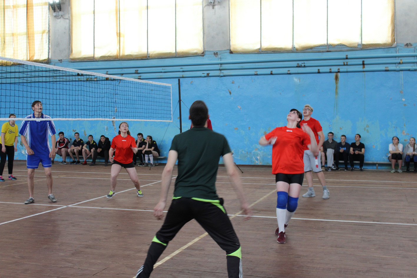 Сегодня в спортивном зале Карачевского филиала «Орел ГУ» им.И.С.Тургенева начался открытый турнир по волейболу среди смешанных команд (4 юноши и 2 девушки).