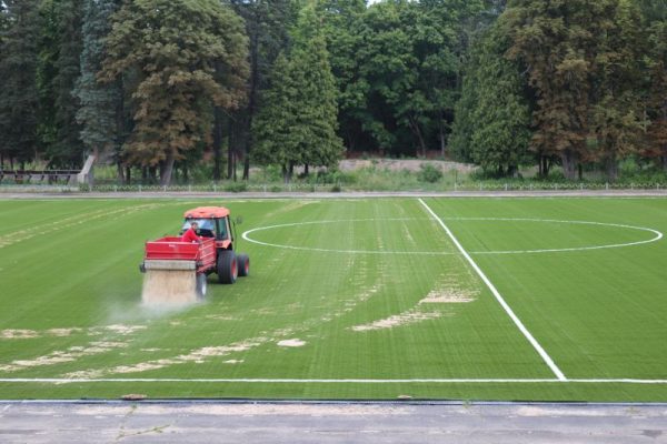 Специалисты субподрядной организации ООО «Текстор А» провели разметку футбольного поля на стадионе «Труд» — здесь уложено новое искусственное покрытие. Новая «одежда» для футбольного поля, выполненная из монофеломентной нити на каустиковой основе имеет срок службы — от 5 до 10 лет. Кроме того, важно за ним постоянно ухаживать: регулярно подсыпать наполнитель, расчесывать. С помощью спецтехники такая это можно сделать за один день, а срок эксплуатации составит 10 лет. (0+)