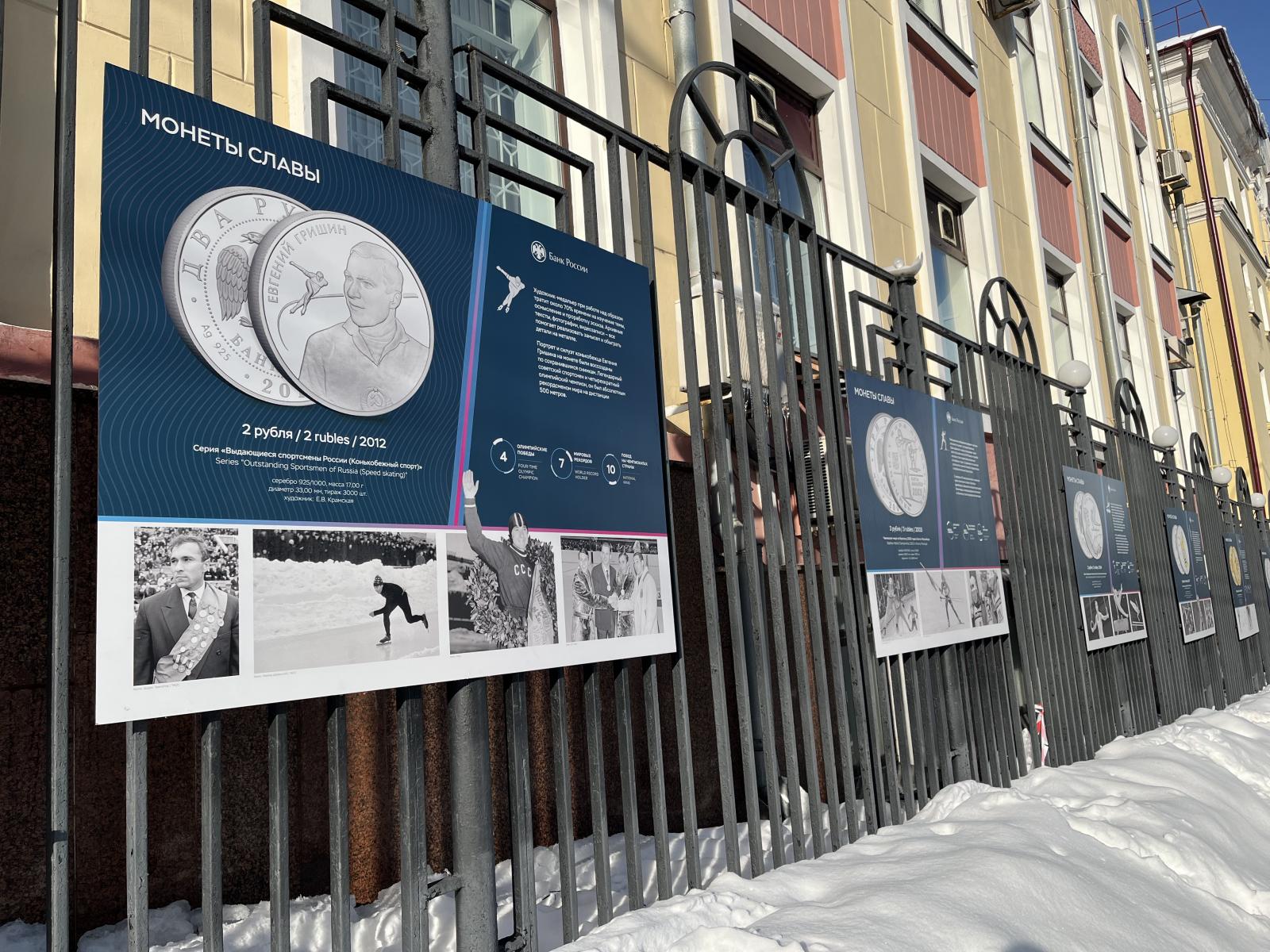 19 фотостендов памятных монет с изображениями знаменитых фигуристов и лыжников, прославленных футболистов и гимнастов, чемпионов конькобежного спорта появилась в преддверии Олимпийских игр в Пекине.
