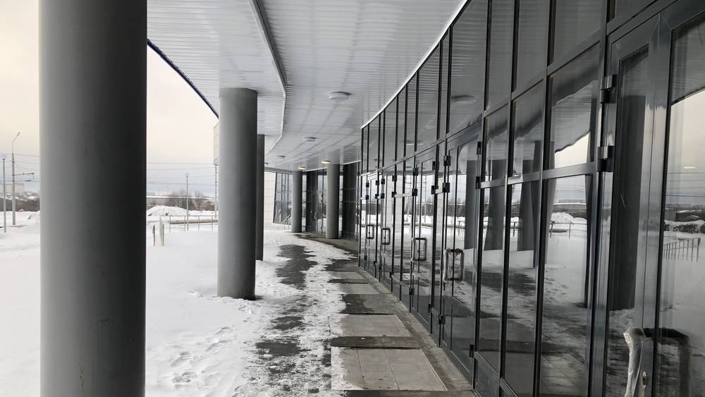 Рабочие провели отделку, установили оборудование на центральной арене, уложили паркет. Общая площадь спорткомплекса порядка 55 тысяч м².