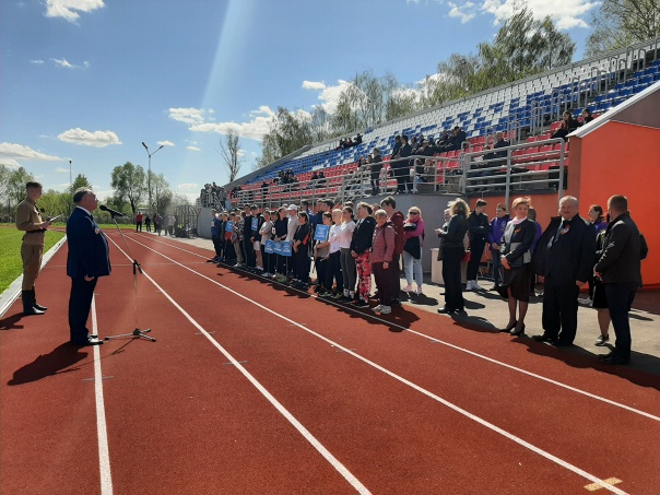 В приветственном слове глава райадминистрации Л.В.Филин поздравил карачевцев с этим Великим праздником и вручил директору детско-юношеской спортивной школы В.А. Войтову Почетный знак «За заслуги в развитии физической культуры и спорта в Брянской области». Затем среди учащихся района провели легкоатлетическую «Эстафету Победы».