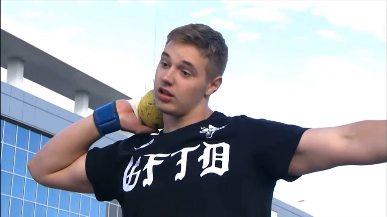 На Первенстве России в Челябинске он отправил снаряд на 20,39 м. Это на 5 см превосходит предыдущий рекорд страны, который продержался 10 лет.