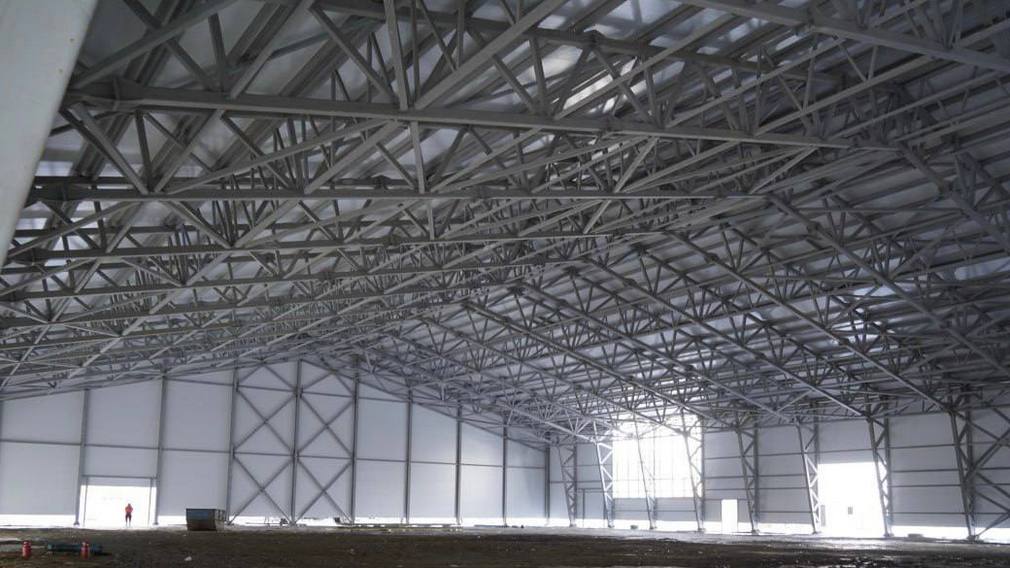 Уже завершились работы по устройству фундамента, теплосетей, ливневой канализации, электроснабжения. Строители закончили монтаж металлокаркаса, стеновых и кровельных сэндвич-панелей. На объекте началось устройство водосточной системы кровли и перегородок в административно-бытовом корпусе.
