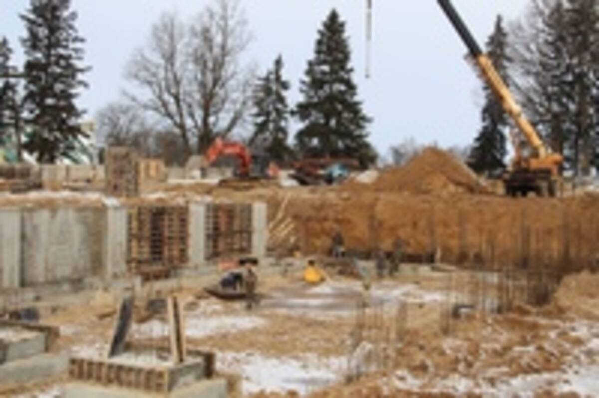В настоящее время строители проводят работы по устройству опорных монолитных стен. Бригада трудится без простоев. Стены они обрабатывают двумя слоями горячего битума. Производится и обратная засыпка котлована песком, так как технический этаж предусмотрен для обслуживания бассейна и под административными помещениями. За качеством выполнения работ на каждом этапе строго следят специалисты не только администрации Брасовского района, но и Управления капитального строительства Брянской области и Госинспекции.