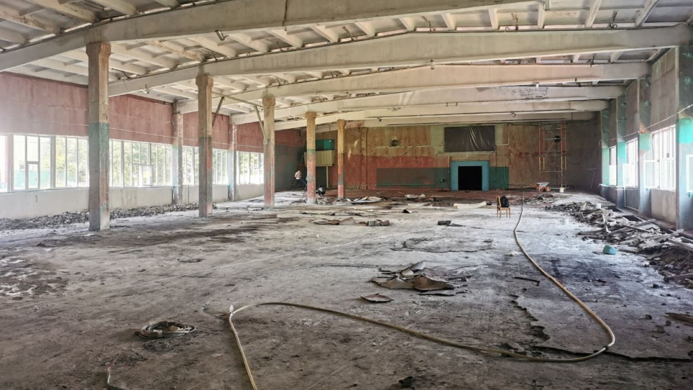 На стадионе полностью демонтировано старое искусственное покрытие и начата укладка новой дренажной системы. В легкоатлетическом манеже идут демонтажные работы.